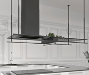 Transform your kitchen with the stylish and functional Frame Cooker Hood, designed to blend seamlessly into traditional or industrial kitchen spaces. Available in two sizes, 140 cm or 180 cm, this island cooker hood is finished in a sleek matte black with dark glass panels, exuding modern sophistication.