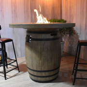 Elementi Tuscany Barrel Fire Table – Rustic Outdoor Fire Pit with Built-In Propane Storage
