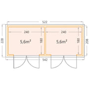 Spacious Design: With external dimensions of 522 cm x 208 cm and a generous height of 219 cm, this garden room provides ample space to suit various needs.