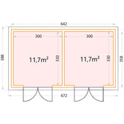 Expansive Dimensions: Measuring 642 cm x 358 cm externally, this 21x13 ft room provides plenty of space for versatile usage, whether as a workshop, garden office, or recreational area.