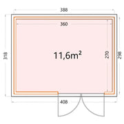 External Dimensions: 388 cm (W) x 298 cm (D) x 260 cm (H)