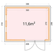 Generous Dimensions: With external dimensions of 388 cm x 298 cm and internal dimensions of 360 cm x 270 cm, this garden room offers ample space for relaxation, work, or storage.