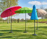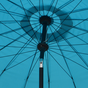 Influenced by the Far Eastern design, this stunning Blossom 2.5m Oriental Parasol in Aqua Blue features a colourful polyester canopy, crank handle and a push-button tilt mechanism. The anthracite coloured centre steel pole supports strong, flexible steel ribs which make them less likely to bend or break. The crank handle system makes this parasol easy to open and close and the tilt mechanism is essential for shade throughout the whole day.