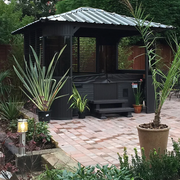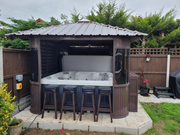 This Canadian Spa Frazer gazebo creates a sheltered area for your hot tub to use in all weather situations