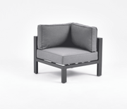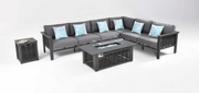 - The frame of the Dallas Firepit Corner Sofa Set features a realistic wood-effect finish which is made from a brushed powder coated steel which makes the frame weatherproof and gives it a stylish look and easy to maintain