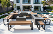 Grillandia T-Bone Dining table with 6 poufs, 2 grill benches