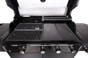 Porcelain enamelled cast iron grills cover the complete cooking surface, providing non-stick cooking and easier clean-up. A porcelain enamelled cast iron innovative rack provides additional cooking space.