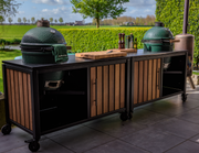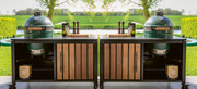 Luxurious Outdoor Kitchen Double Large Green Egg Kamado Grill and Cart
