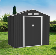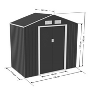 This Hera Apex Metal Shed is a great storage solution for any garden, suitable to be erected on any flat, hard solid surface such as concrete, slabs and boards. Built from galvanized steel, for durable protection against corrosion, with deep grooves to provide strength. The included foundation kit will give you a strong and sturdy building with great access and air circulation.