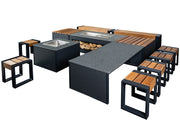 Grillandia T-Bone Dining table with 6 poufs, 2 grill benches