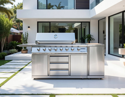 Outback Signature II 6 Burner Hybrid – Stainless Steel and Gas Bottle Cabinet