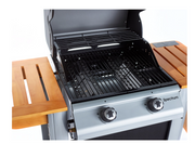An eye-catching design of black, silver and traditional wood gives the Outback Spectrum barbecue the edge as a centrepiece in a garden or patio setting. Auto ignite the twin stainless steel burners to grill your dishes, or roast them beneath the hood to cater for family and friends. There are two handy wooden side tables and a base storage shelf to complete the Spectrum package. Spectrum 2 Burner is supplied with hose and propane regulator.