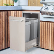 Upgrade your outdoor living space with our stainless-steel solid double rollout trash drawer, which features matching handles as the HCK outdoor fridge range, designed to perfectly complement each other. They are manufactured from high grade 304 stainless steel providing extensive durability. This outdoor kitchen accessory is a practical solution for waste disposal, offering efficient separation of trash. Enhance your outdoor kitchen setup with this sleek and functional addition, combining style and durability.