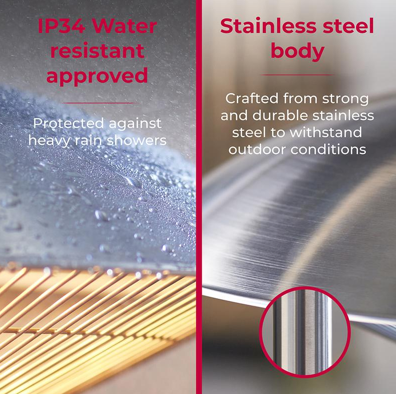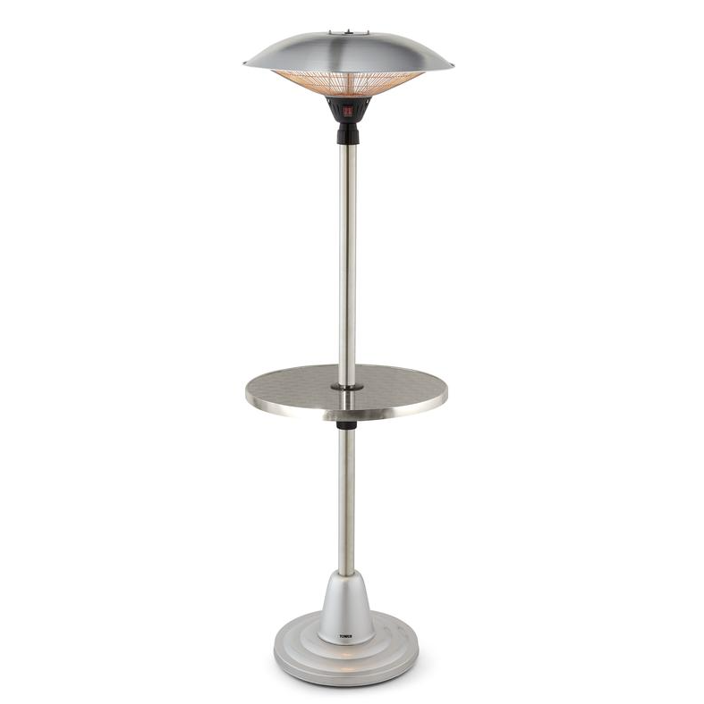 Stay warm in the outdoors all year round with the Tower 2000W Free Standing Patio Heater and Table. The smart halogen heat technology provides 360 heating to keep everyone warm - simply place on your patio, decking or around the garden and enjoy yourself without getting cold. Using the varying power settings, you can stay cosy after a warm summers day or heat up on a chillier evening with friends. Choose from 1000W and 2000W to achieve your desired temperature. For added convenience, this heater features a built-in table for drinks and snacks when entertaining in the garden. Crafted from strong and durable stainless steel, it's designed to withstand varying outdoor conditions so you won't need to worry about storing away in heavy rain showers.