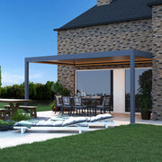 The panels of the Pinela roof can be tilted up to 120 degrees. The panels of the Pinela and the optional LED lighting can be controlled with the SOMFY remote control supplied. The Pinela can be free-standing or wall-mounted.