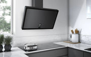 - Finished in black with matte glass, this cooker hood offers durability and timeless elegance.