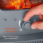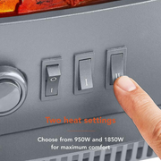 Create a cosy and intimate atmosphere with the Warmlite Jesmond 1.85KW Log Fire Stove, designed to keep you warm without the hassle of a real log fire. Choose from two optional heat settings of 950W and 1850W for maximum comfort to wind down after a long day. The realistic flame design can be enjoyed as a cosy visual effect even when you don't need warming up - perfect for entertaining with friends and family. Whether you feel the cold or you're more warm-blooded, we've made it easier than ever to control the temperature of your room. Simply set to your desired temperature and this will be maintained using the built-in thermostat. The thermal cut-off device prevents overheating so you'll always have peace of mind when keeping your home warm. Crafted with a grey cast effect finish for the look and feel of an authentic fireplace, to complete the modern aesthetic in your home.