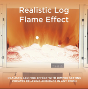 The Electric Double Door Fireplace Heater replicates the look and feel of a warm fire to turn a dark, cold night into a cosy evening lounging in your living room. Its elegant cast iron finish is coupled with a realistic log flame effect to create an authentic, relaxing atmosphere in your home. Open the large panoramic window display to easily control settings, with the ability to dim the LED flame effect to set the ideal mood. It features a choice of two heat settings to warm up your room in a matter of minutes, with an 8 hour timer function to pre-set the heater to power on or shut off at a time that suits. A remote control is included to conveniently adjust settings from the comfort of your sofa. The Electric Double Door Fireplace Heater offers a stylish heating solution without sacrificing ambience.