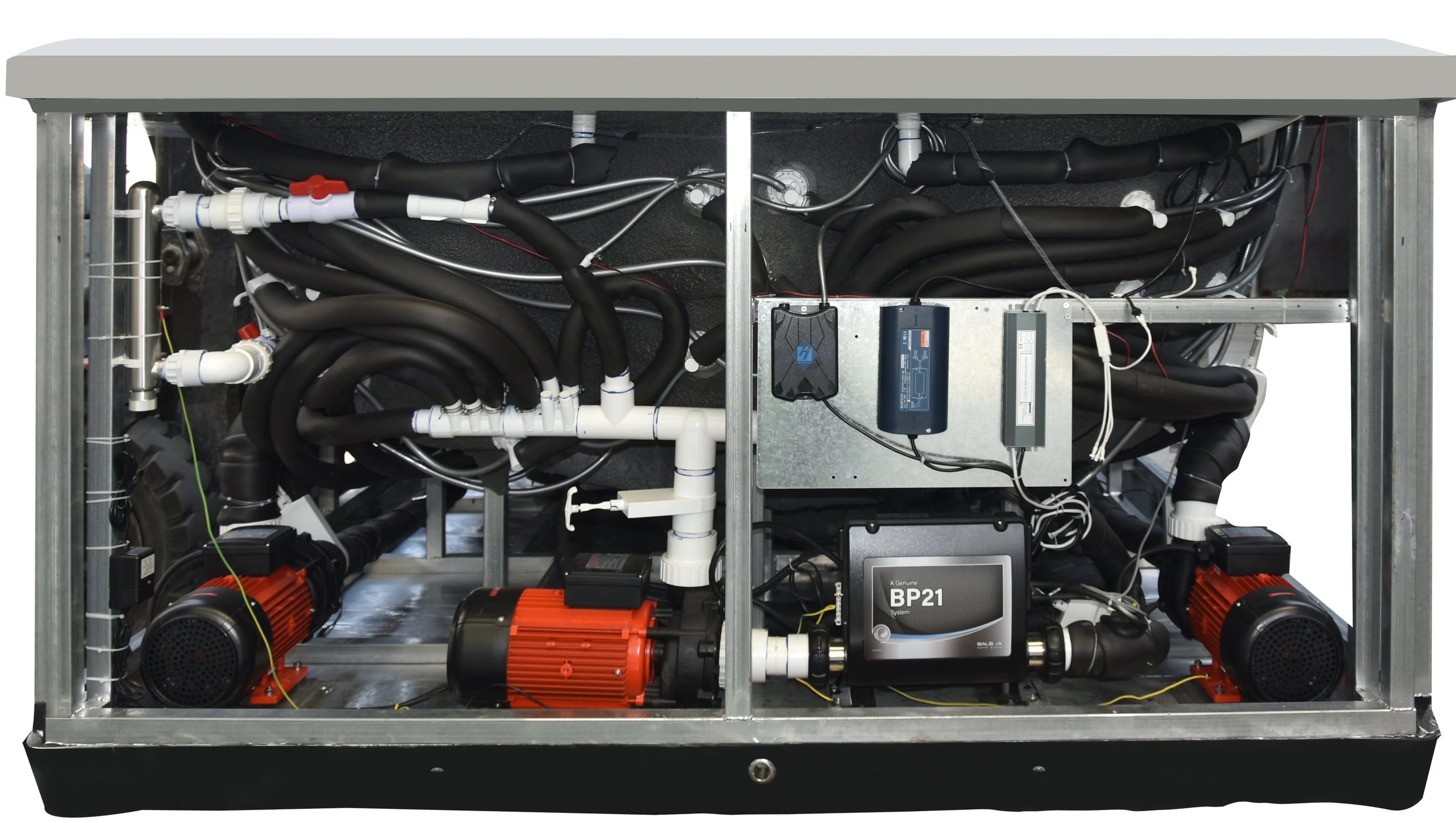 Built of sturdy and durable acrylic, your swim spa’s shell is made to withstand years of outdoor life - both through the coldest depths of winter and the heavy heat of summer. With resistance to wear & tear, stains, superficial scratches, UV radiation, harsh weather and many household chemical, our spas are able to withstand almost any weather conditions and are suitable for outdoor use all year round. The shell is reinforced with fibreglass and the maintenance-free PCV wood-effect cabinet is requires no sanding or staining. The strong galvanised steel frame distributes weight evenly across the base of the spa. The base is constructed from marine-grade timber to prevent rot and pest intrusion.