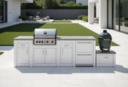 Grandpro by Stoll Aluminum Outdoor Kitchen Pro Elite, Green Egg, and Double Drawer Fridge | 3.8M