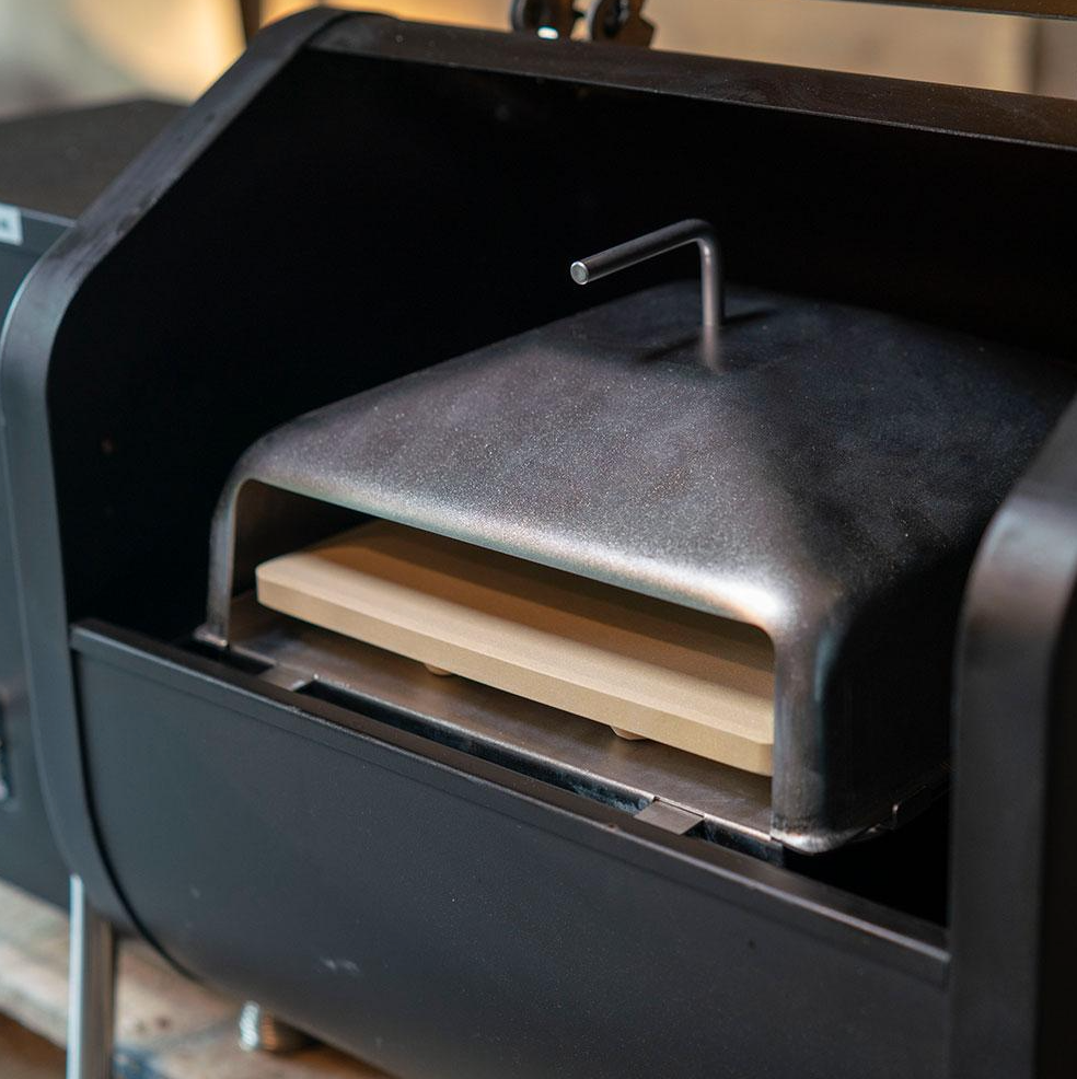 Who doesn’t love pizza??? Convert your GMG Pellet Grill into a Wood-Fired gourmet pizza oven. The pizza oven attachment captures and funnels the heat from the firebox directly up and into the steel baking chamber encasing the pizza stone. This process raises the internal temperature of your pellet grill to that of a real wood burning pizza oven. It creates temperatures upwards of 800°F, allowing you to cook ristorante quality pizzas in 2-4 minutes. It’s also useful for baking bread and searing steaks. Pick your toppings and GO!