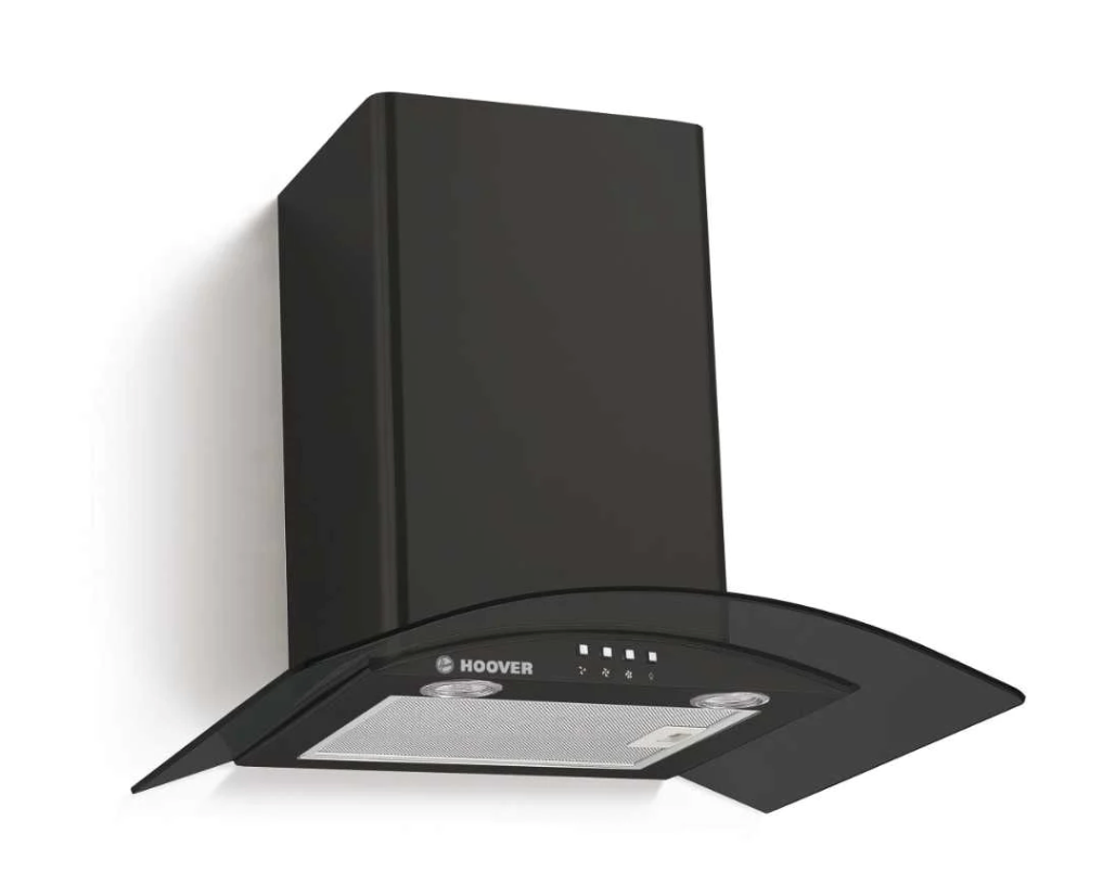 Hoover HGM610NN 60cm Wall Mounted Cooker Hood Black Steel & Tinted Glass