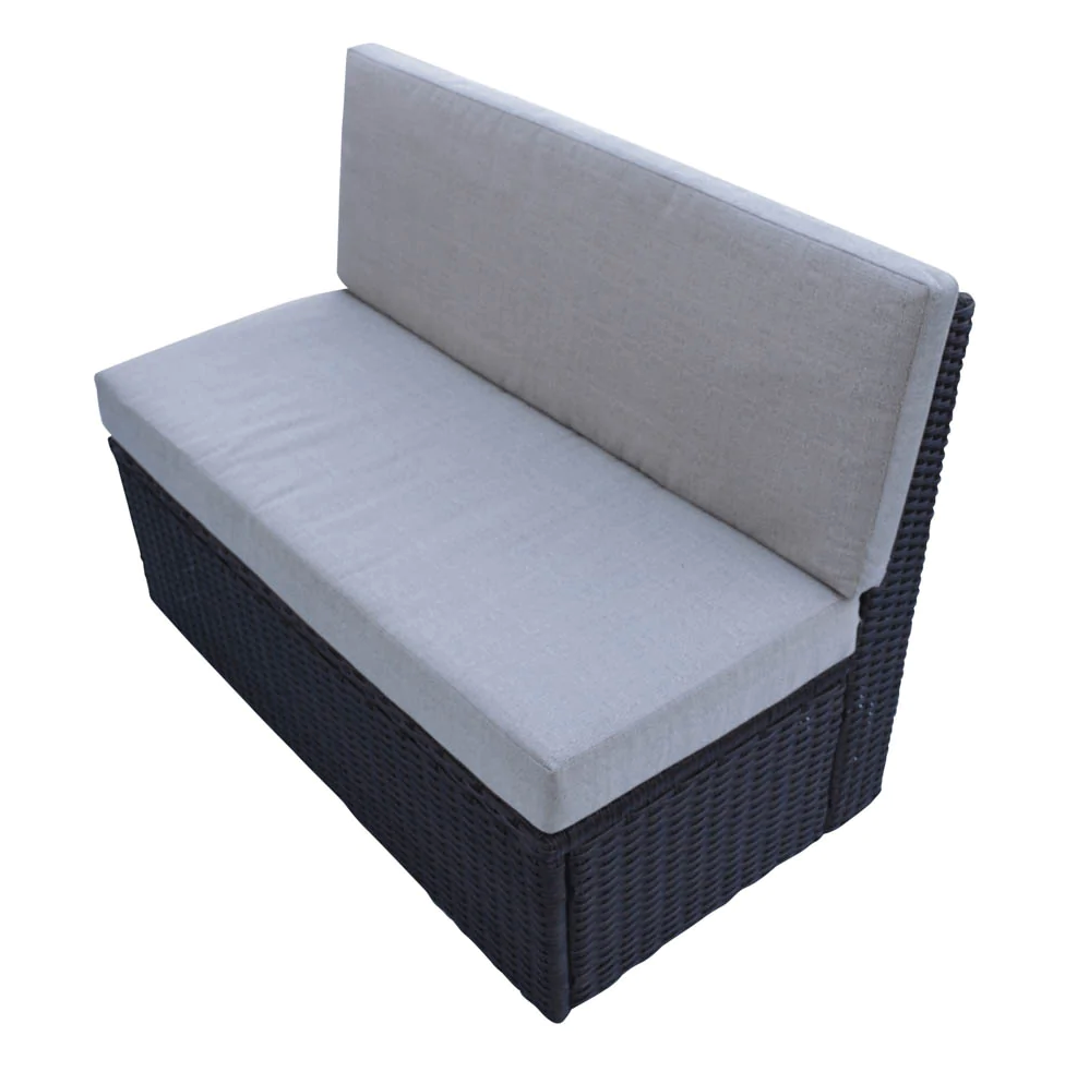 Relax on the sofa while your friends and family enjoy the spa! This love seat is designed to be used alongside other items from the Square Spa Surround Furniture collection to create the ultimate outdoor oasis that perfectly surrounds your square or rectangular spa. It features an attractive wicker finish, constructed of a durable, weather resistant, synthetic rattan over a rust-proof, heavy gauge aluminum frame. The seat cushion is upholstered with a comfortable, UV protected canvas.