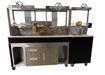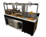 Stainless steel base unit with drawers and cupboard for storage and having log storage to either side