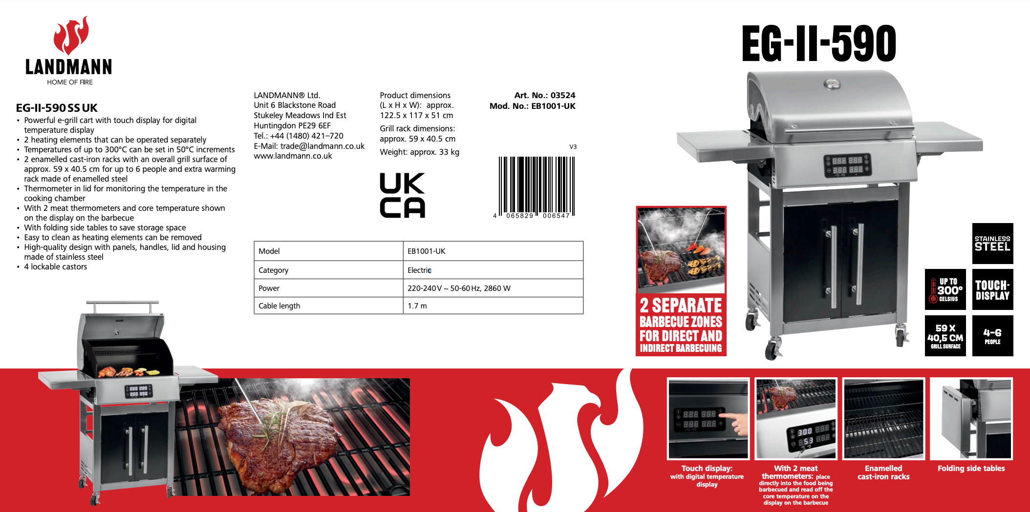 Grillandia Outdoor Kitchen Land Mann Electric Grill, Fridge and Weather Cover - 2.5M