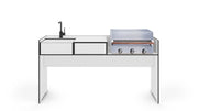 Overview: The SOLUS Kitchen is a compact, adaptable outdoor kitchen solution, perfect for balconies, small patios, or limited spaces. Its movable and removable insert elements allow you to create a personalized cooking setup, accommodating nearly any grill. A standout feature is its HPL washbasin—both a visual highlight and a highly functional addition.