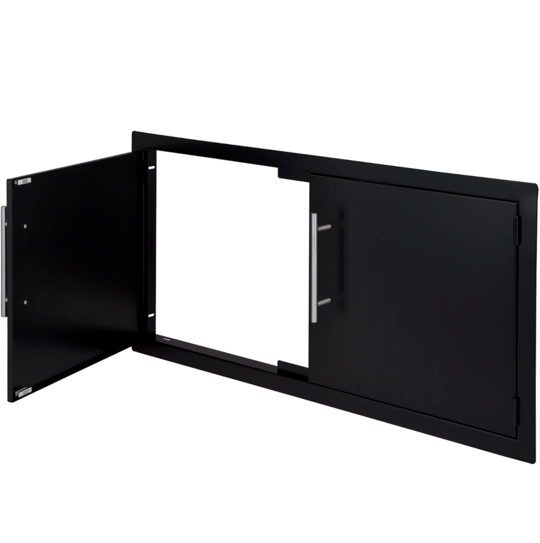 Enhance your outdoor cooking space with this sleek and durable double door, designed for both style and functionality. Featuring a sophisticated matte black finish, it blends seamlessly with various outdoor settings, whether installed on paint, stone, or stucco. The flush-fit design and pre-drilled frame holes ensure effortless installation, making it a must-have for any premium outdoor kitchen.
