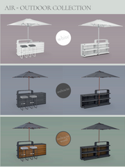 The modular system 'AIR' includes counter, buffet, bar stools and parasol, which can be combined with each other. Bar and buffet elements are available in different colors and surfaces. In addition to anthracite and white, outdoor bar and buffet are also offered with a front in anthracite and weather-resistant polywood. These two basic elements are complemented by a sunshade and bar stools. All elements of the system can be purchased separately and combined.