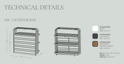 The outdoor counter AIR, just like the buffet - module and the bar stool, is made of weather-resistant and powder-coated aluminum. The robust material guarantees a long life and good corrosion resistance. Aluminum is lightfast, weather resistant, and can withstand frost, sun, rain and UV radiation.