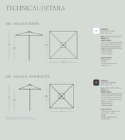 1 x parasol square 250x250cm height 270cm