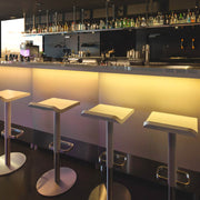 The special feature: the individual bar modules have two separately operated multicolor LED units, so that the front and work area behind the counter can shine in different colors of your choice. The integrated lighting is controlled by radio remote control, whereby four channels are available and thus not only individual areas (front or work surface), but also the different segments can be controlled individually. Colors can thus be adjusted according to the event and an impressive atmosphere can be created. Configure your desired system specifically to your requirements. In the product details you will find all the necessary information. The counter can also be ideally combined with our bar stools "ED".