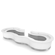 The special feature: the individual bar modules have two separately operated multicolor LED units, so that the front and work area behind the counter can shine in different colors of your choice. The integrated lighting is controlled by radio remote control, whereby four channels are available and thus not only individual areas (front or work surface), but also the different segments can be controlled individually. Colors can thus be adjusted according to the event and an impressive atmosphere can be created. Configure your desired system specifically to your requirements. In the product details you will find all the necessary information. The counter can also be ideally combined with our bar stools "ED".