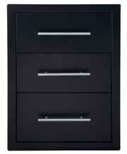• Sunstone® Triple Drawer has deep drawers which will give symmetry and add storage space to your Outdoor Kitchen. You can also make combinations of drawers side by side, below your counter, or match it with a Single or Double Drawer. With a stunning matte black finish and polished chrome handles, this beautiful triple drawer creates a perfect complement to products like DV1724, A-DD40, B-TRHD and DSV1724 because all of them have the same height to fit perfectly.