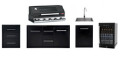 • The Sunstone® 42” Multi-Storage Combo has absolutely everything needed for your outdoor kitchen, featuring one of the largest all in one solution with two spacious center drawers, on the right side well as a roll out drawer for storing a trash bin or an adjustable Trash-Bag Ring for a no-fuss Loose Trash Bag. On the Left features a Multi-Levelled Full-Height Drawer with interior stationary shelf, perfect for warming your food. All drawer tracks feature High-End Soft-Closing Tracks. This Multi Storage Combo is beautifully designed and offers a stunning matte black finish.