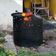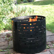 The Diamonds 70 Fire Pit offers a different set up to our bowl fire pits; with the fire a little more shielded by the steel barrel design. The fire is built on a raised shelf and the height of the fire will depend on how high you pile the logs. Cut around the barrel is an elegant diamond design which gives beautiful atmosphere as the flames dance through the pattern. Included is the removable Swing Arm BBQ Rack to convert your fire pit into an outstanding barbecue.