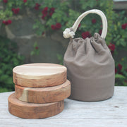 Smooth wooden fire pit feet to place under your fire pit legs. As your fire pit settles into life in your garden, the steel will oxidise and develop a russet patina. It’s part of the natural lifespan of steel, but we know you don’t always want to see evidence of it on your patio. Made from seasoned hardwood, these little platforms are designed to protect your outdoor area from rust stains. They come in a lovely little tote bag which can then be used to hold various garden knick-knacks.