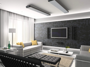 The Silver surface of the reflecting body emits the maximum radiation at each temperature and wavelength. The Silver surface and the thickness of anodizing have been calculated to maximize emissivity. A cross section with decreasing thickness draws heat from the heating elements to spread it evenly up to the sides. The longitudinal ribs increase the radiating surface intensifying the irradiation and allowing the rays to spread further, expanding the range of action accordingly.