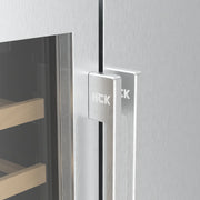 The HCK SC-180W2D outdoor wine cooler and beer refrigerator with digital LED temperature display is the perfect blend of functionality and style that will enhance any outdoor kitchen/bar. The left zone offers a perfect wine or champagne storage solution with adjustable wooden shelves whilst the right hand zone can store beverages or food. The half glass half stainless door finish adds a touch of luxury. This undercounter half glass half solid door refrigerator is engineered to thrive in extreme weather conditions. Crafted with UV-safe materials and a stainless steel half glass half solid door and cabinet, this 180L refrigerator is built to endure the elements while maintaining optimal performance. The soft self-closing solid door ensures energy efficiency, while the integrated venting system keeps contents cool. With sturdy wooden shelves, this outdoor fridge combines durability with practicality, providing a reliable solution for all outdoor cooling needs. HCK (Husky Cool King) have been pioneering innovative cooling solutions since 1971 and is one of the market leaders in outdoor refrigeration.