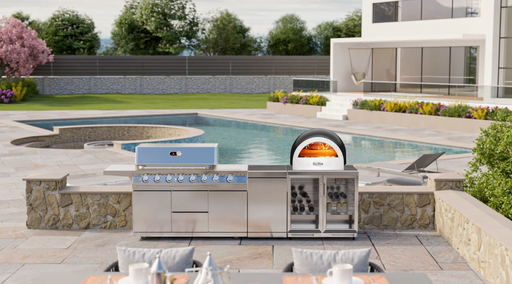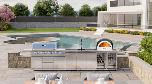 View full detailsWhistler Outdoor Kitchen 6 Burner BBQ, Sink and Fridge | Oaksey and Pizza Oven