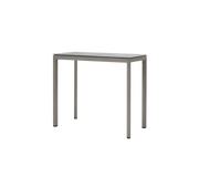 The Drop bar table combines an edgy table top with a softer shape in the aluminium frame. This provides a completely new style of outdoor tables to our assortment. The Drop collection designed by Cane-line Design consists of a collection containing an outdoor kitchen concept and elegant outdoor tables. The frame of the series is made of custom-designed profiles that ensure a strong construction and elegant finish. The series is inspired by a drop shape that gives a profile with both edges and soft curves