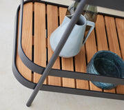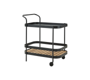 Roll bar trolley is a modern and minimalistic trolley in Scandinavian design. It is designed by the design duo Welling/Ludvik, known for pure aesthetic and letting each detail serve a functional purpose. Roll Bar trolley is ideal for storing or serving purposes and the wheels make it easy to move around and place it where needed. The teak plates can be moved around so you can create the look you like. Cane-line teak is approved and cultivated according to SVLK certification system. Roll Bar trolley is produced in powder-coated aluminium, which ensure a resistant surface.The colours are timeless in either white or black. To preserve the original unique teak colour and maintain the fine teak wood, we recommend to use Cane-line Teak Care products. Our care products help to preserve the nice and warm golden-brown colour of your teak furniture.