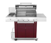 Barbecue Grill - Fry Top 750 4-burner Hybrid with Sun Grill trolley Bordeaux red and Dual side burner