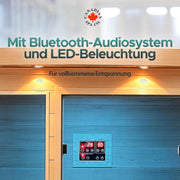 Blending simplicity with innovation, this sauna offers an intuitive digital control system to fine-tune your experience. Elevate your sessions with the built-in Bluetooth Audio System for your favorite tunes and podcasts. The LED Chromotherapy Lighting is tailored to uplift your mood and augment your sauna journey, while the aromatherapy system fills the air with aromatic scents, enhancing relaxation.