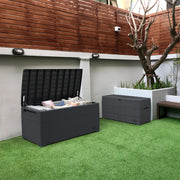 Equip your garden with spacious, reliable storage with this Durabox Storage Box with an impressive 416 Litres of space. Perfect for toys, tools, cushions and more, this plastic store comes in a sleek grey with a stylish woodgrain finish that won’t rust or rot. Strong and secure, it can even double as a bench for additional outdoor seating!