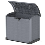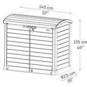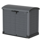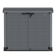 Bring unbeatable outdoor storage to your home with the DuraMax StoreAway Storage Box. A large storage box with an impressive interior capacity of 1200 litres, this premium storage box can be used for wheelie bins, barbecues, garden furniture - and much, much more! Easy access is provided by double doors and an opening arc lid. Finished in a sleek grey woodgrain exterior.