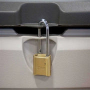 The lockable lid is designed with a spring hinge to prevent slamming and opens more than 90 degrees for easy access.